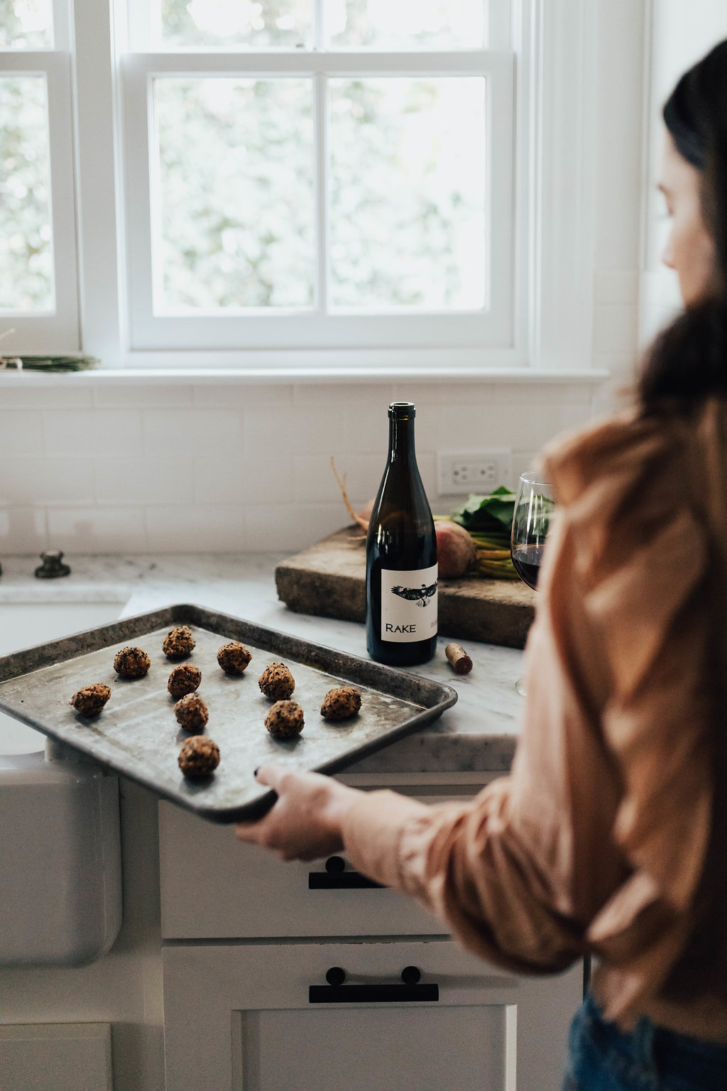 My girlfriend Suruchi whipped up two dipping sauces to enjoy with the arancini. The tahini sauce was my personal favorite (went with all three flavors) but I do love tahini! And we enjoyed our little taste testing with a bottle of Merchant Rake wine. A friend’s wine out of Los Alamos that everyone was raving about!