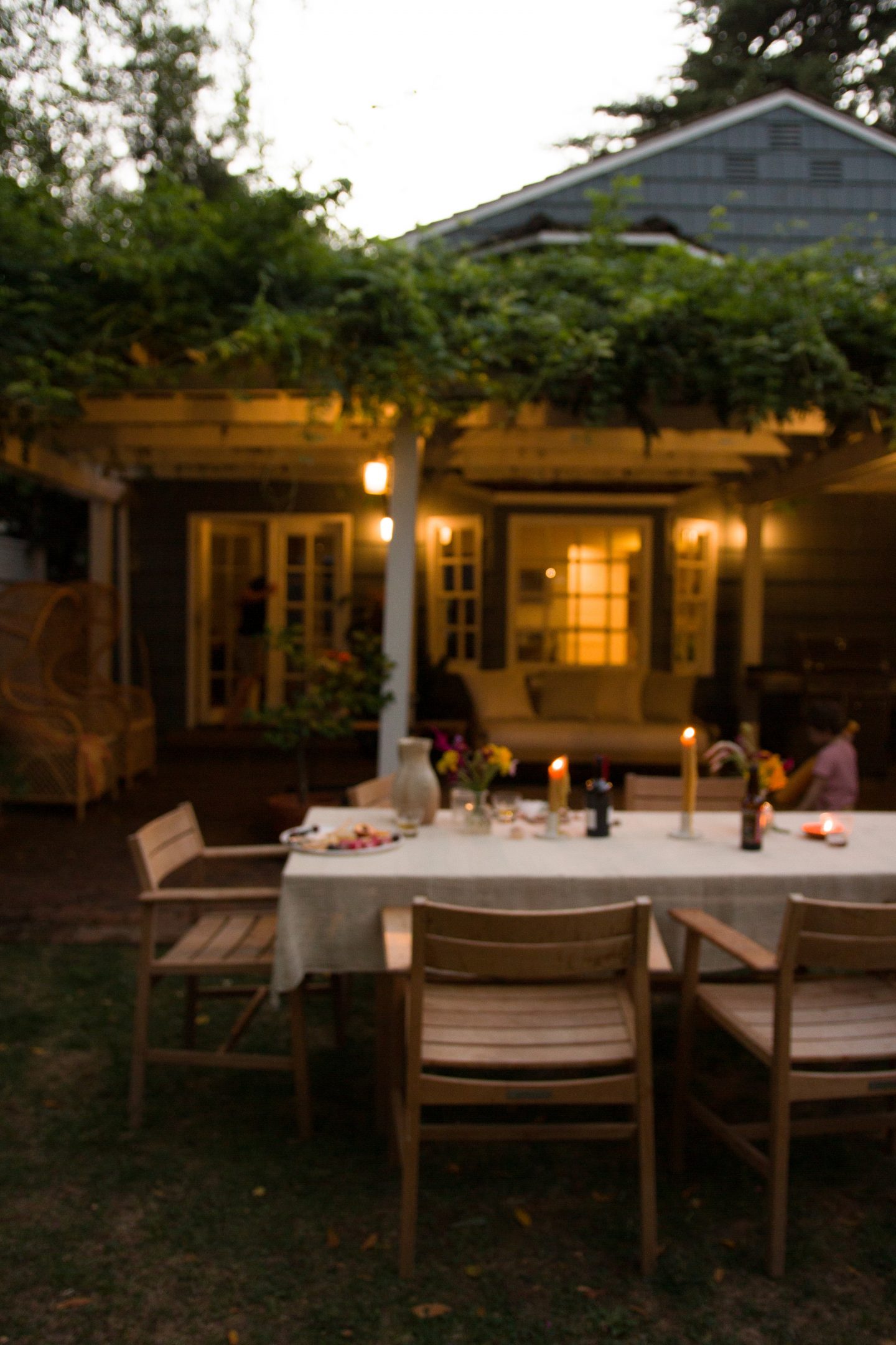 This summer with all of us at home more I’ve really leaned into my love of making tabletops beautiful and dinnertime feel special. From pulling out the special linens and dinnerware to lighting candles and foraging flowers for the table… it truly is a creative process for me that makes me so happy. I really got into this simple routine last summer when Willow was a newborn. Just the act of pulling out my favorite dishes and setting up a low-key dinner, al fresco style, outside for my family felt so nice. (I think it’s something about getting out of the house even if you’re just walking into your own backyard). And during those early-motherhood days taking a shower, putting on a dress and eating off pretty plates just makes the everyday moments feel extra special. As I think back on the highs and lows of this year–I think we have all agreed that the slowing down has been good for all of us. I’m so appreciative of moments like these, candlelit dinners with Tanner that honestly wouldn’t happen nearly as frequently as they have with a three and one year old (and Rex and Willow aren’t that much fun to eat out at a restaurant with anyway… so honestly it’s much more enjoyable in our own backyard these days so they can run around while we get our own personal date night).
