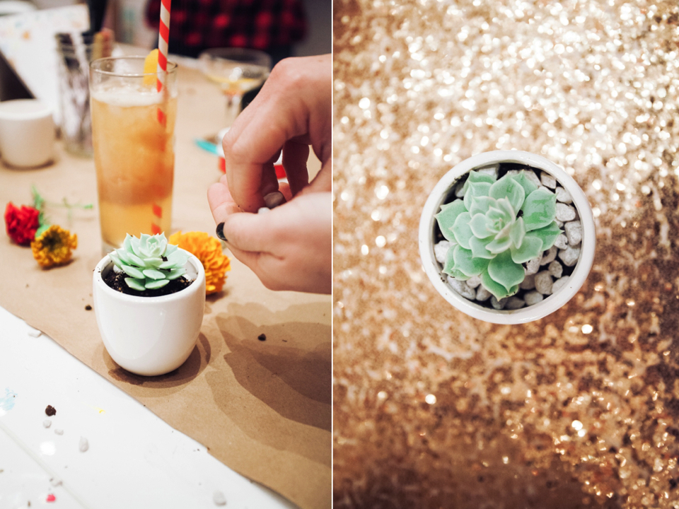 Succulent favors (you know I love my cacti!). Create mini greens for your guests to take home.