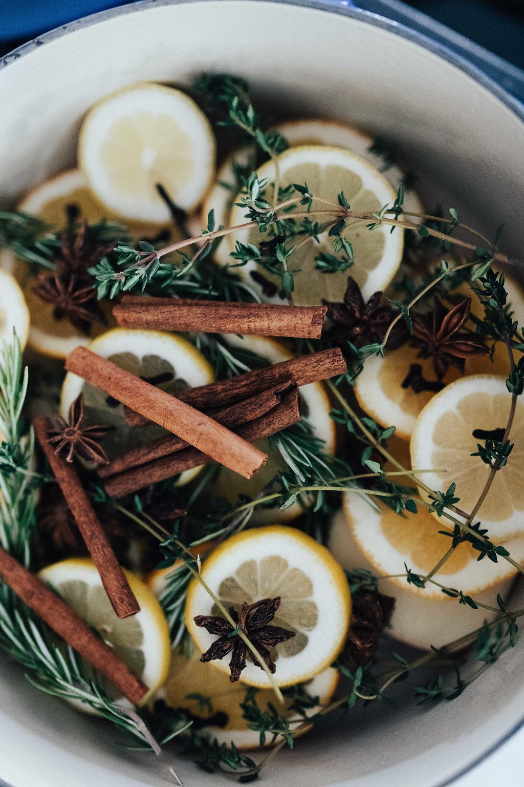 Fall Simmer Pot | slice apples, oranges, lemons (anything you have on hand). add herbs + cinnamon + cloves … simmer on low heat