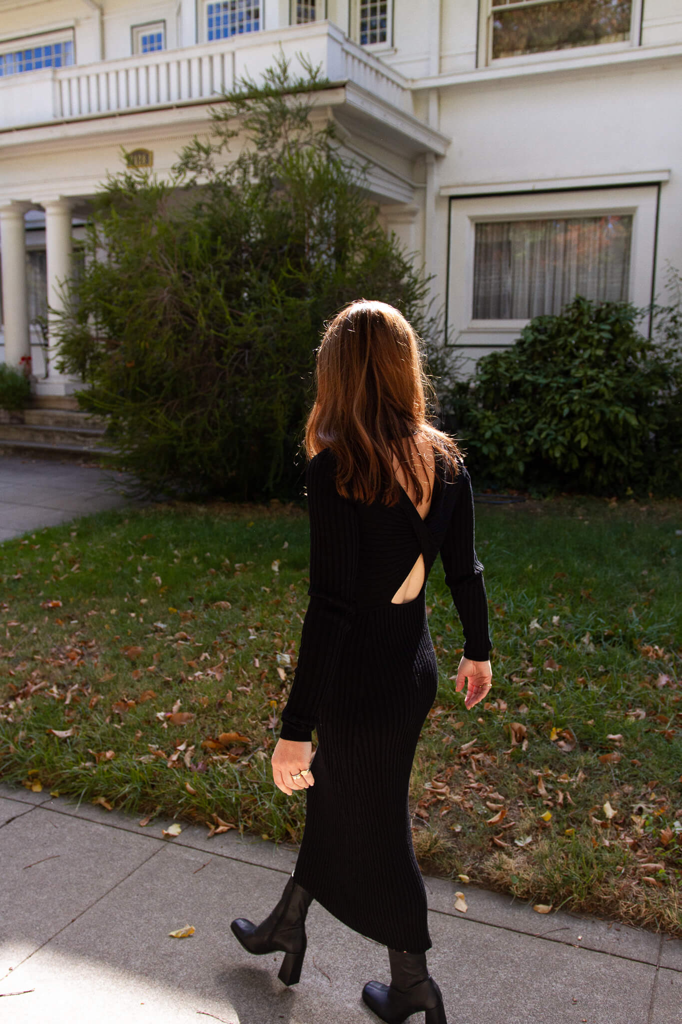 I’ve always been a knitted dress person with boots for fall but I’ve been especially into them this season. It probably has everything to do with the fact that I’m just excited to dress up a bit again,… but I love that a knitted dress is that perfect in-between comfy and chic. Making you feel your very best! The twisted open back on this one is the best part and the fit is just super flattering, hugging and sucking in all the right places… and it’s currently 25% as part of Net-A-Porter’s Friends & Family sale (with code: 25OFF). It’s one of my most favorite purchases this fall––such a gorgeous dress in person! It’s the more splurge version of this knit dress I’ve been wearing.