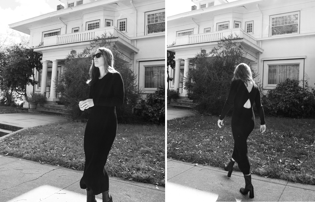 I’ve always been a knitted dress person with boots for fall but I’ve been especially into them this season. It probably has everything to do with the fact that I’m just excited to dress up a bit again,… but I love that a knitted dress is that perfect in-between comfy and chic. Making you feel your very best! The twisted open back on this one is the best part and the fit is just super flattering, hugging and sucking in all the right places… and it’s currently 25% as part of Net-A-Porter’s Friends & Family sale (with code: 25OFF). It’s one of my most favorite purchases this fall––such a gorgeous dress in person! It’s the more splurge version of this knit dress I’ve been wearing.