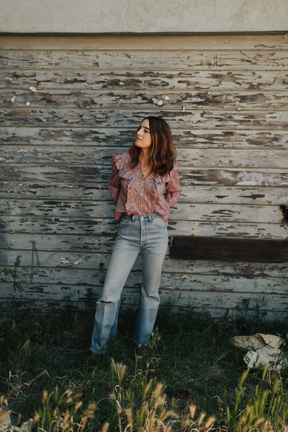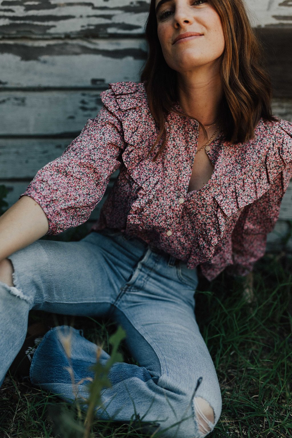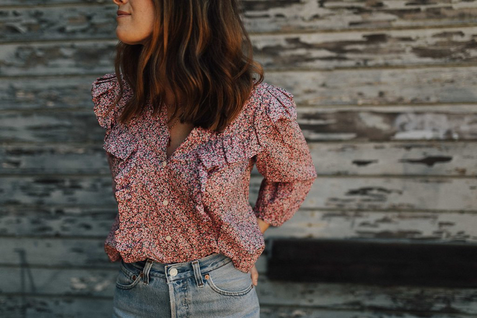 I’m so in love with everything La Vie Rebecca Taylor this season (Rebecca Taylor’s more casual wear line). Have you checked it out yet? When I think of Rebecca Taylor I think of the perfect work and event dressing pieces so La Vie is such a nice compliment to the brand. A more versatile collection for everyday dressing. Honestly that’s more of what I’m living in these days on the regular anyway–denim and pretty blouses (or tees!). I’m behind on sharing about it because when La Vie first came out last fall I was way pregnant and sadly couldn’t fit into anything. But now that I can I can’t stop telling my girlfriends about it and seriously want every single piece. It totally fulfills my girlie side. This sweet floral blouse feels a little bit country, a little bit house on the pairie and yet totally cool girl when paired back with levis. And I just love that.