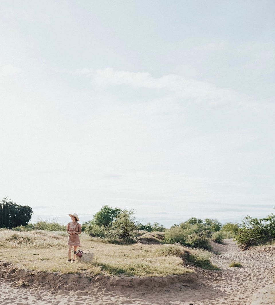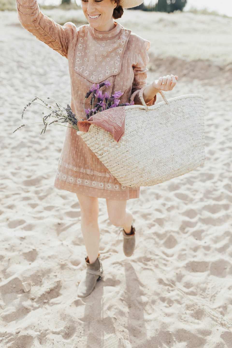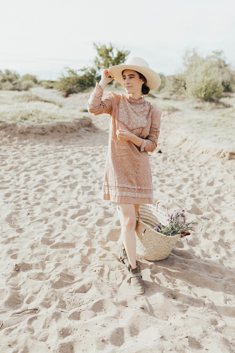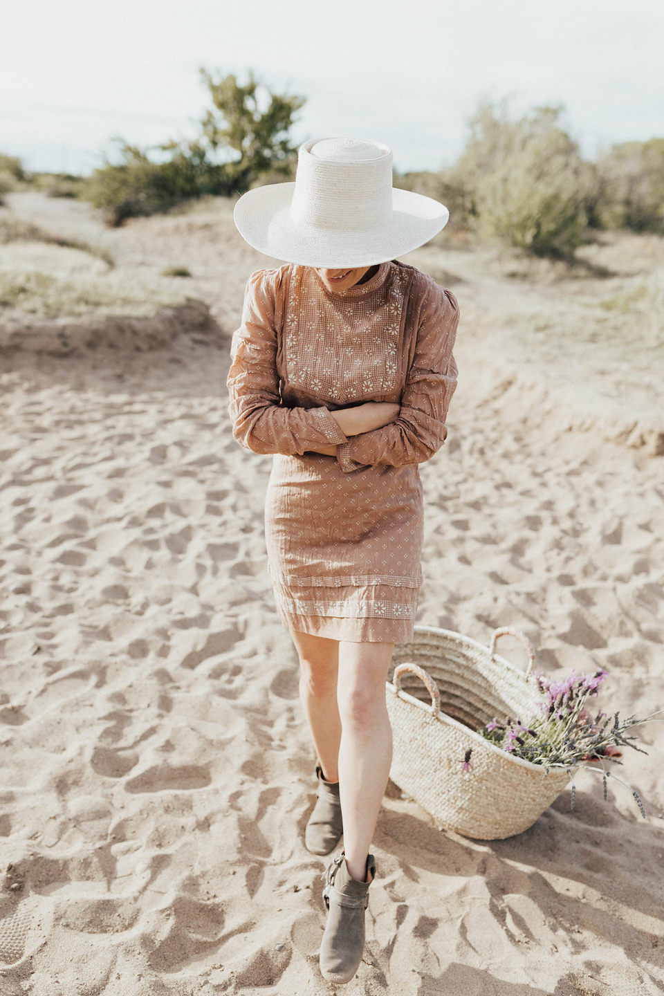The Look | Doen Dress. Isabel Marant Booties (old). Hat from here in Ojai. Basket from Loomgoods.