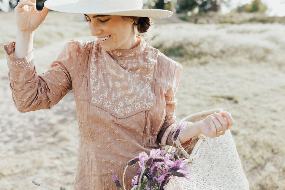 I can hear the sound track in my head–an ode to spring–when looking back through these photos. I had just gone for a long late afternoon walk with Rex, picked up a basketful of lavender from a neighbor’s garden stand and came home to slip on this sweet new spring dress style from Doen for the evening. Almost sounds like I made that sequence of events up but it really was the perfect way to spend a sunny afternoon.