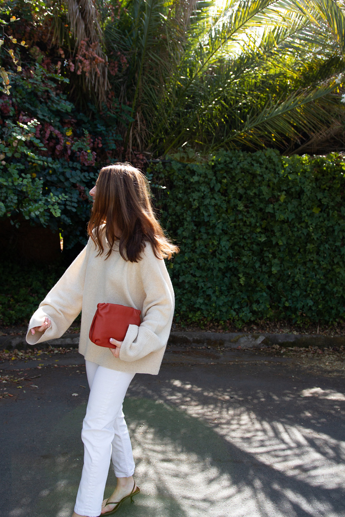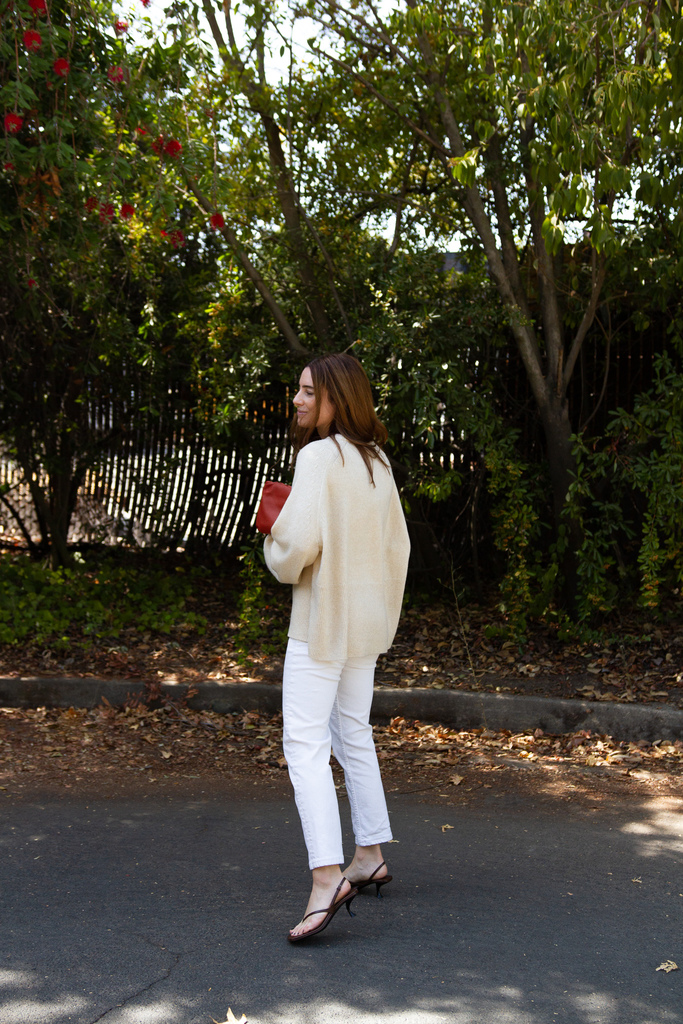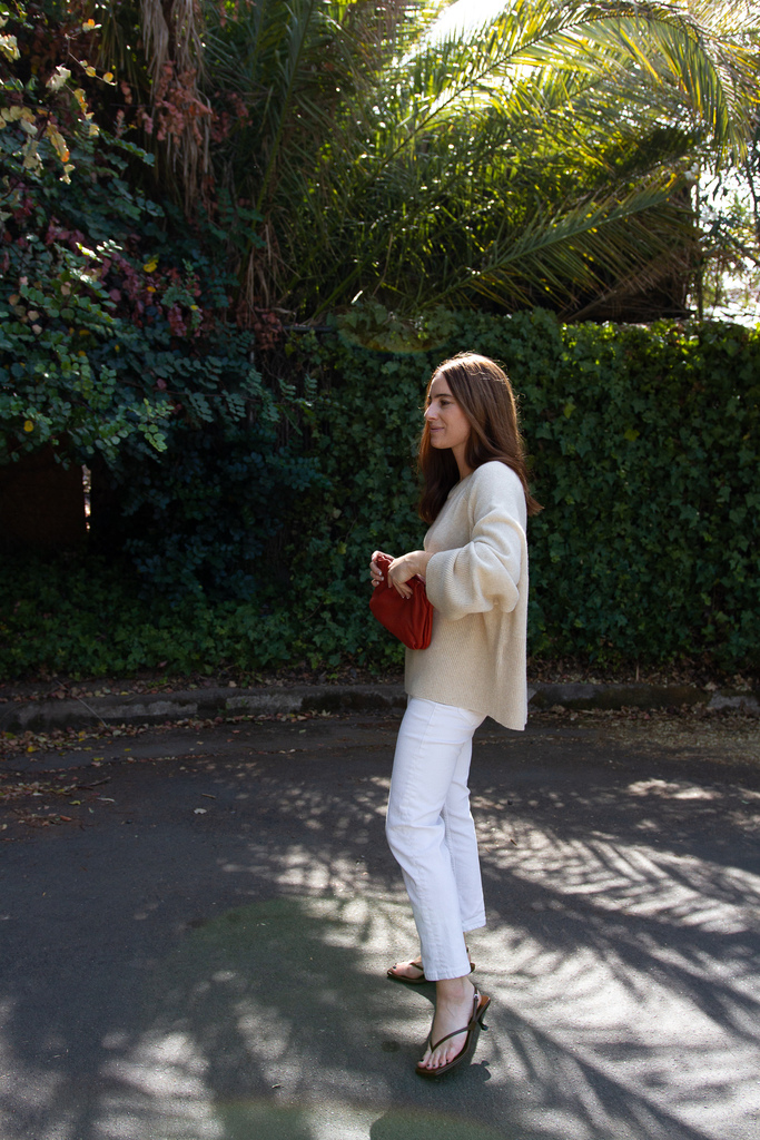 It’s still very warm in California so I’ve been the most inspired to transition into fall in an ivory / nude but cozy color palette. I love a monochrome look which is just always easy… and yet letting the accessories elevate things a bit for that fall vibe. Belts, hoop earrings, a darker boot or heel and rich colored bags.