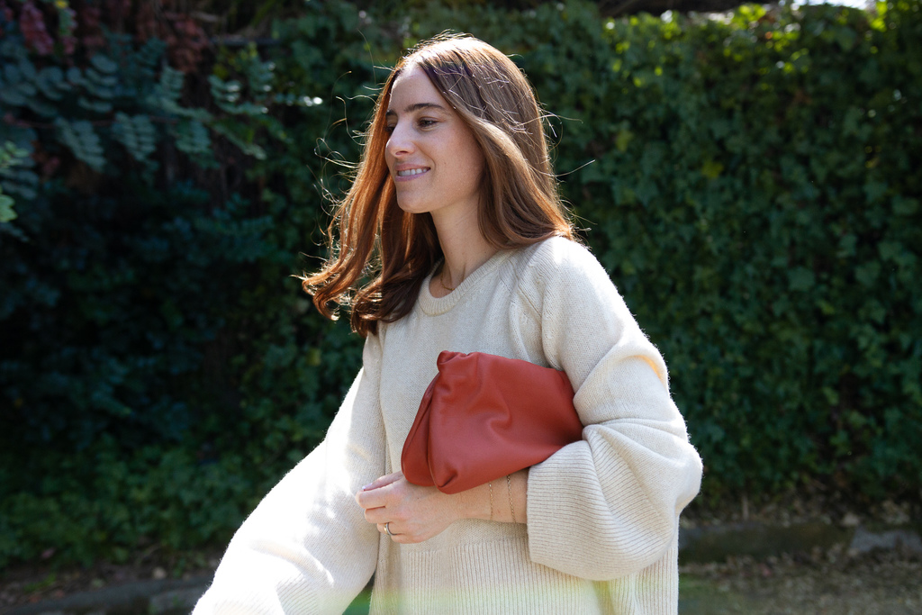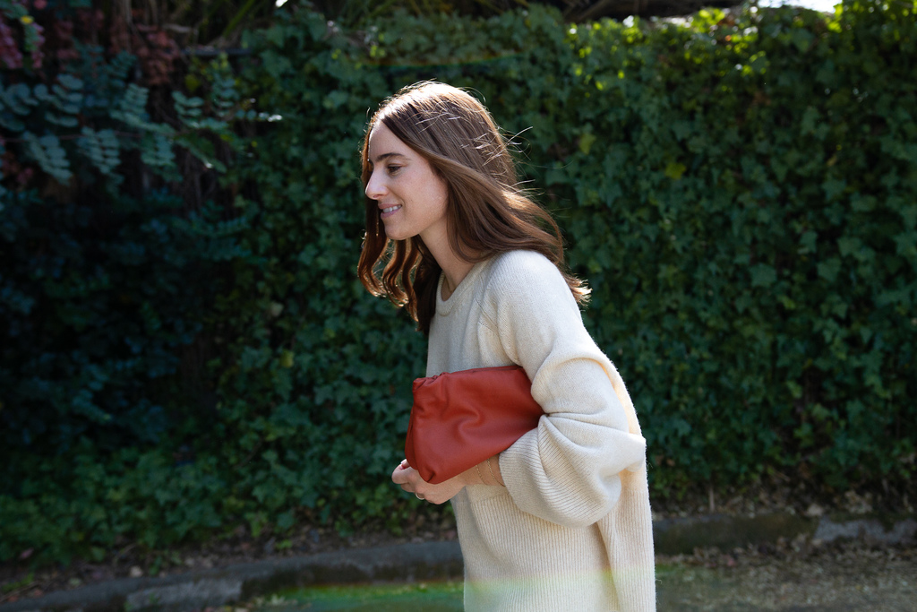 I fell hard for this brown-red leather clutch from The Row. I also love it in the ivory and of course classic black. But something about the brown-red felt really transitional to me, yet is also a great year-round color. I couldn’t be more obsessed! The Row makes some of my absolute favorite hand bags and has been my first choice for bags for a while now. Beautiful buttery leather, timeless yet unique styles and understated.