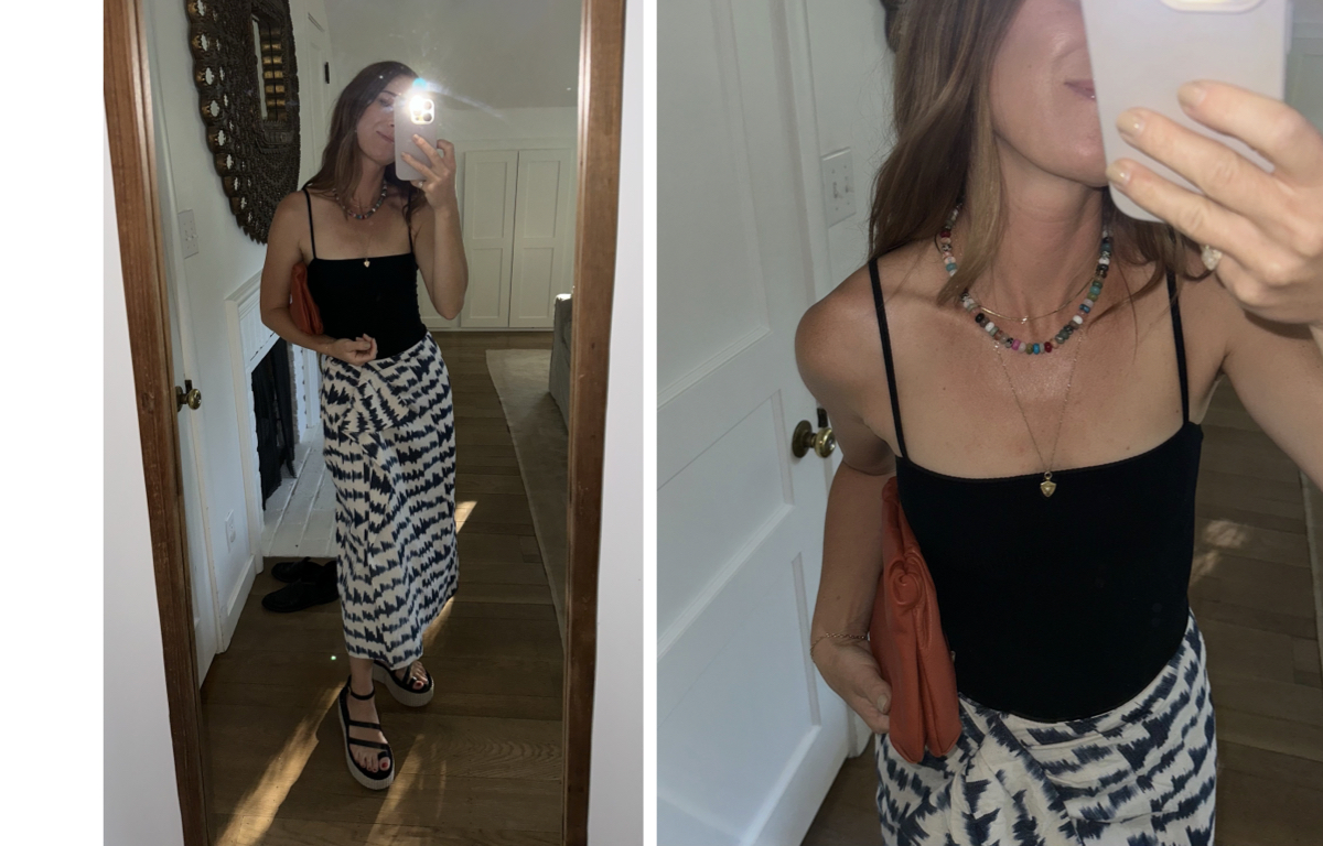 The black bodysuit is a wardrobe hero of mine… and one of those key pieces for me during this in-between seasonal dressing that I tend to not get very excited about. I recently pulled back out an oldie but goodie black bodysuit (I’ve probably had for 5 years? from Reformation) with the perfect thin straps and square neckline and I instantly felt better.