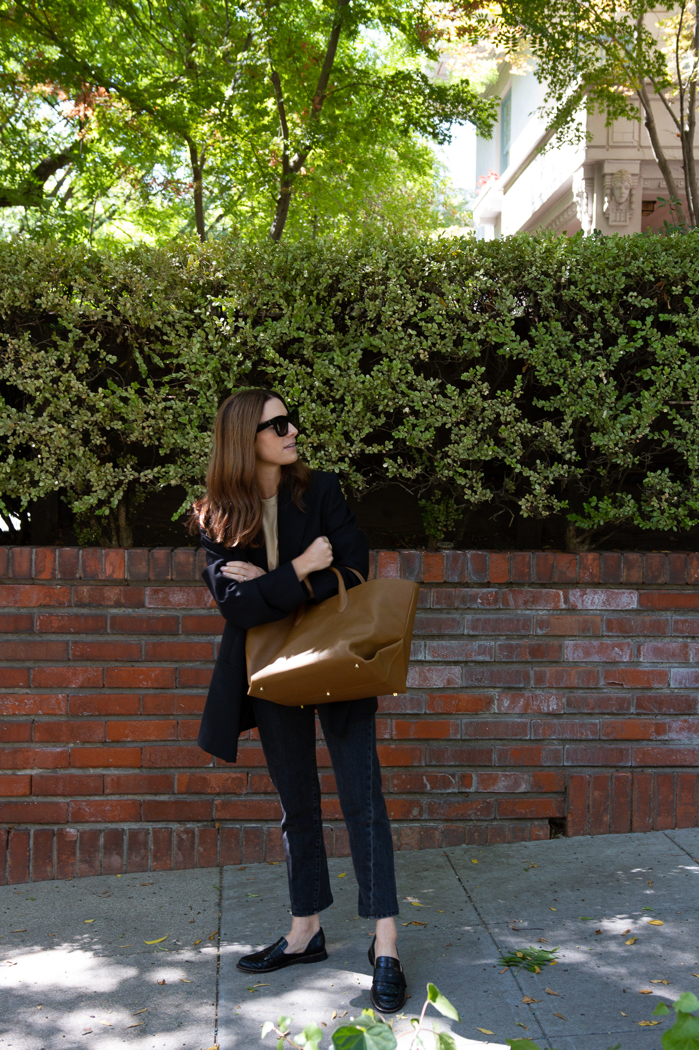 Such a simple go-to look for me from a day when it was cooler and I actually got to throw on a blazer in the morning. Fall is that time of year I crave more “city” looks again and I have been dressing as if I’m in New York or San Francisco. I definitely have my casual Sacramento mom-uniform (t-shirt and jeans or a Dôen summer dress) and then I’ll throw a blazer or more structured blouse and fancier flat or boot on for a city day. This is one of those looks that makes me feel the most like me.