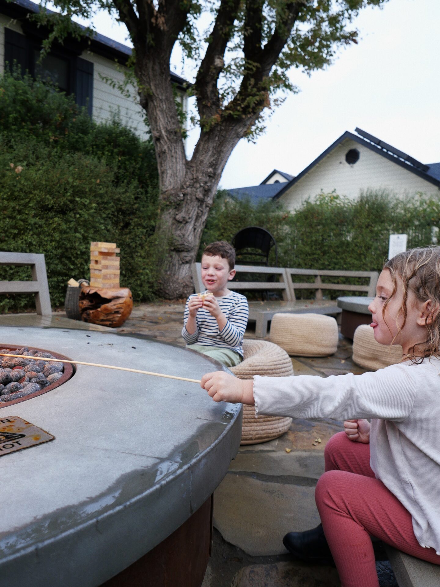 The suites are huge –– such a great size if you’re planning to go with kids –– there was a pull out sofa for R & W to sleep on with still plenty of room when it was pulled out. We put the fire on in our room each night and let the kids watch movies. Saturday evening we ordered room service and on a rainy evening it made for such a nice night in. We also took full advantage of the outside shower which Rex and Willow had so much fun in.