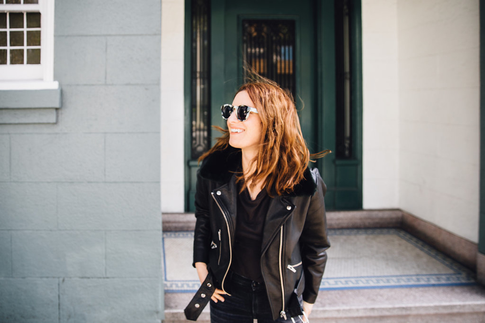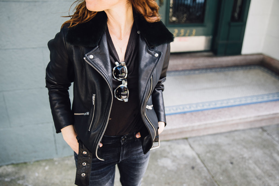 The Look ~ all via Elizabeth Charles | Veda Jacket (love the fur collar!). R13 Tee + Jeans. Illesteva Sunglasses.