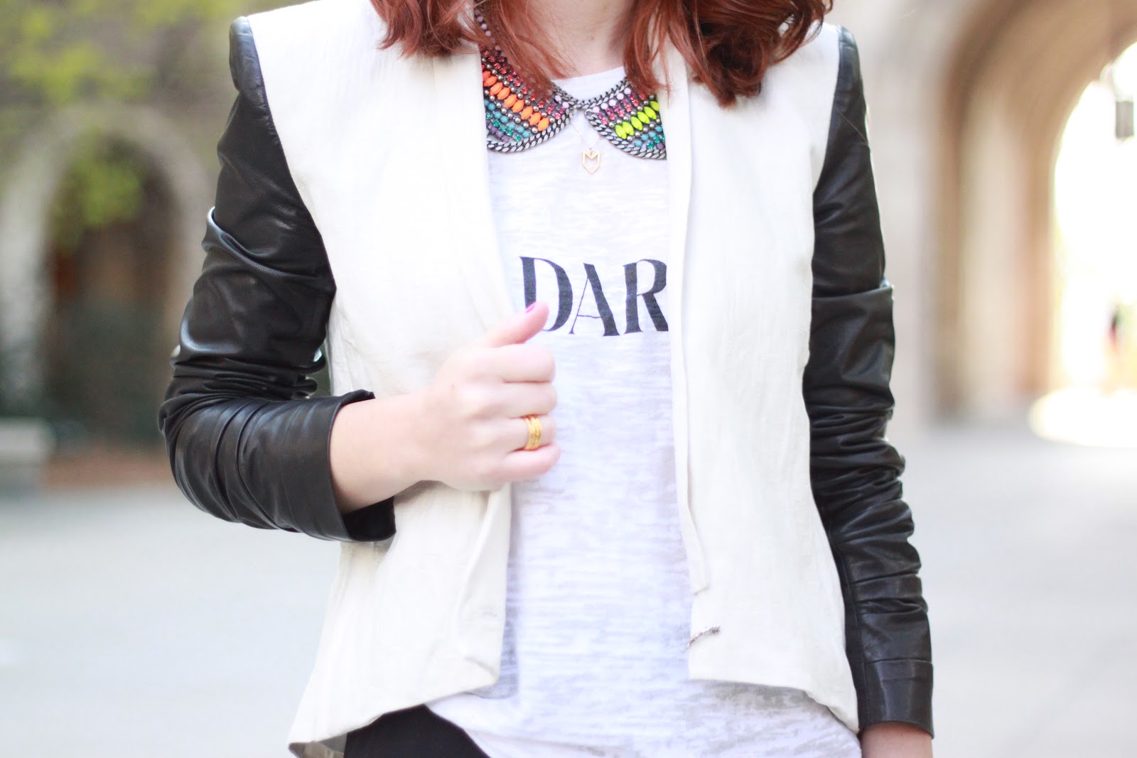 Helmut Lang Blazer. Rodarte Tee. BB Dakota Pants (similar style for spring). Dannijo Bib.