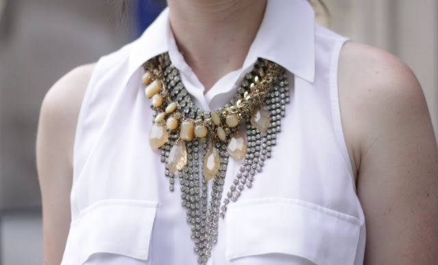 I have been more then a little intrigued with the idea of bibbed necklaces and decided I would concoct my own with the gems I already have. Enter my absolute favorite vintage necklace topped with my new favorite Stella and Dot Jacqueline Necklace and my faux bib was instantly created! Sure it’s not this awesome Dannijo collar, or the Aram necklace that I mentioned here (which also happens to be on back order — although my credit card and husband are thankful), but I thought the combo was quite the statement, and simultaneously exactly what I was going for.