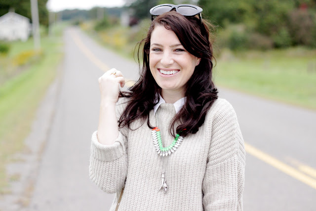 Vince Sweater. Equipment Blouse. Spike the Punch Necklace. House of Harlow Sunglasses.