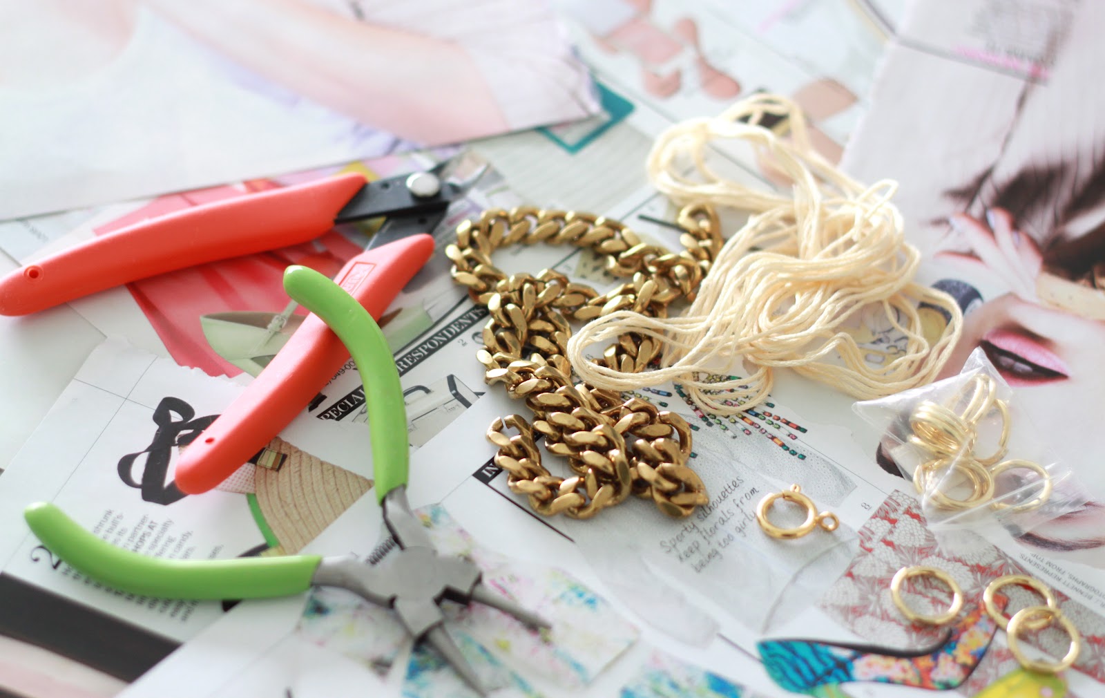 DIY Aurelie Bidermann Necklace (designer version pictured in right hand corner of Harper’s Bazaar).