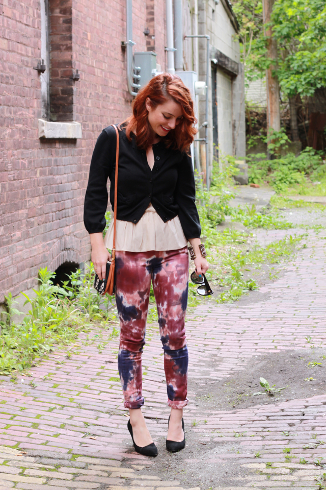 Two things about this outfit… 1) My guy bought this little black sweater for me (for my birthday one year) while we were in Vegas. He picked it out himself at the Nanette Lepore boutique and I am smitten with the little bow pockets (you can actually see them better here). It will always be a favorite in my closet; I just love when items of clothing have cute little stories behind them or remind you of loved ones. 2) I still think these tie-dye jean are the coolest (last seen on the blog here). And one note about these donuts… Monday morning treats sure kicked my week off on the right foot (hope you’re having a great one as well)!