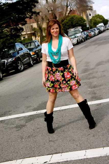 Skirt: Target, Tee: Alternative Apparel, Boots: Tory Burch