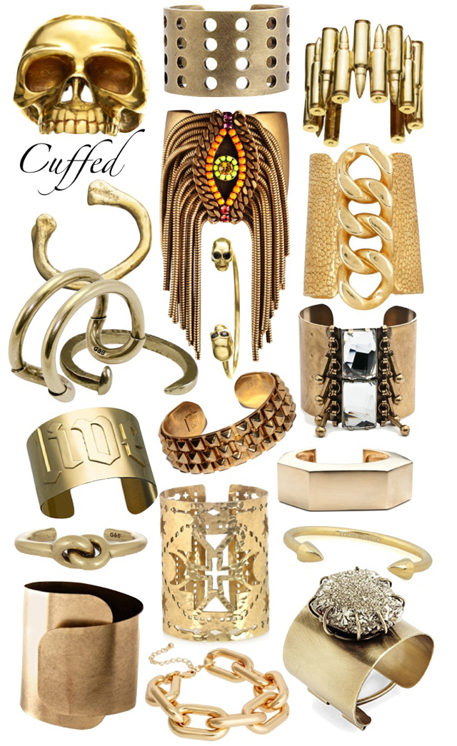 Cuffs are one of my main weaknesses when it comes to statement jewelry. It’s so easy for me to throw on a bold / quirky bangle as I walk out the door, giving any basic ensemble that effortless touch of edge. Most of the above are a bit of an investment in price but nonetheless are all currently on my wish list. I haven’t stopped thinking about the Jennifer Fisher skull cuff since pining it last week and if you like her unexpected bullet cuff my friend Grace made a similar DIY Bullet Cuff that looks easy enough to attempt! Happy Friday!