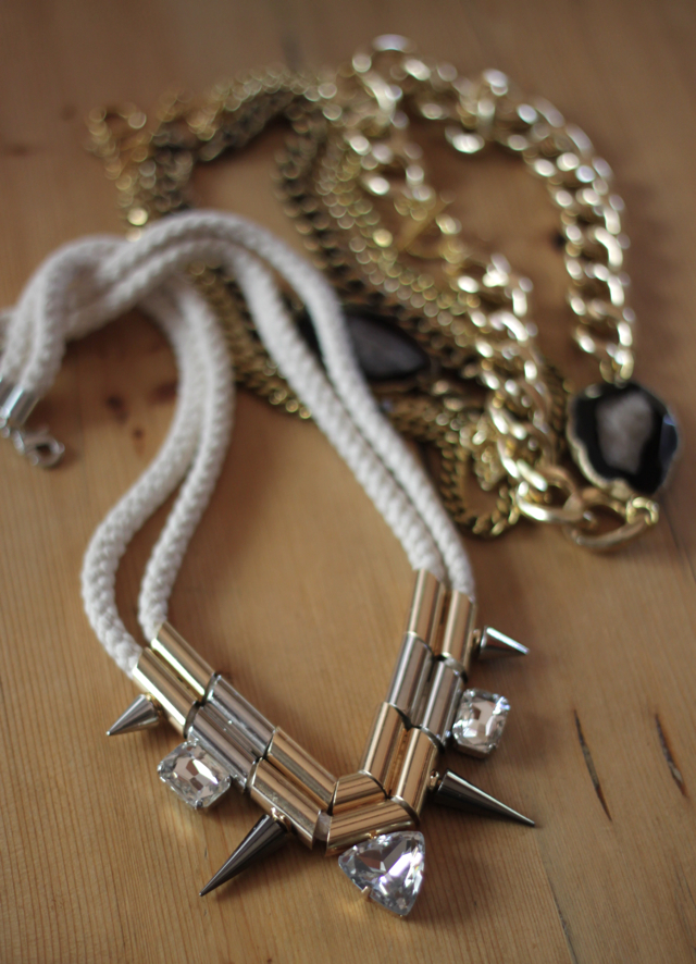 Two packages arrived on my doorstep yesterday, one from Shopbop (always exciting) and the other from Elizabeth the designer of my favorite Etsy shop: Oia Jules. I’m so thrilled to be working with Elizabeth on a fun upcoming project and can’t wait to show you her latest pieces… stay tuned! I like to pair edgier necklaces like those above with my more feminine silk blouses or even my favorite tees. One statement making necklace, cuff or pair of earrings is all you need to pull a look together (and you will look completely effortless while doing so).