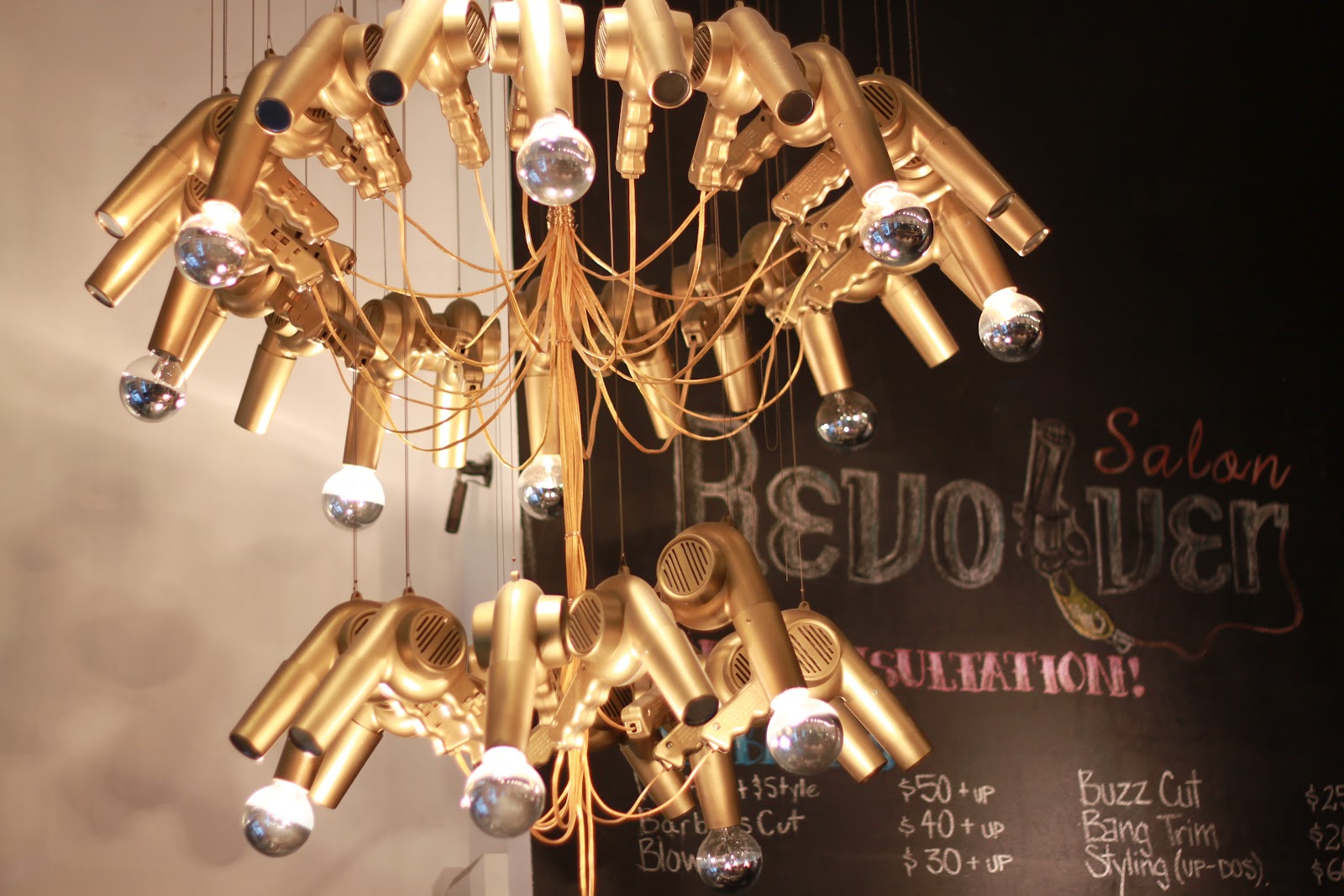 Crazy cool blow dryer lighting at Revolver Salon in Soho.