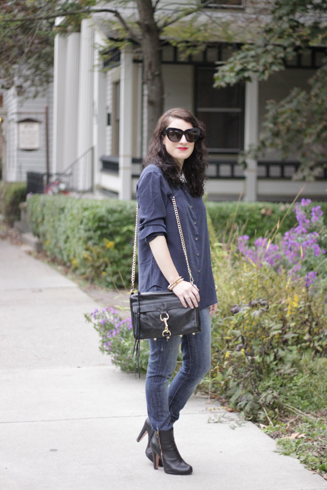Equipment Blouse (similar). Rock and Republic Jeans. Vintage Boots. gifted Rebecca Minkoff MAC Clutch.