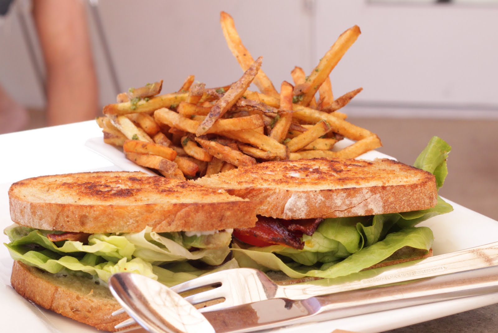 BLT with Jalapeno Bacon + Pesto Fries from Cheekys.