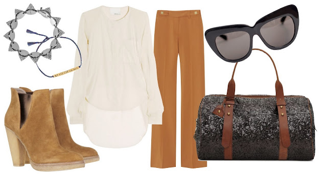 Eddie Borgo and Mathias Chaize Bracelets. Belle Sigerson Morrison Boots. 3.1 Phillip Lim Blouse. DVF Trousers.