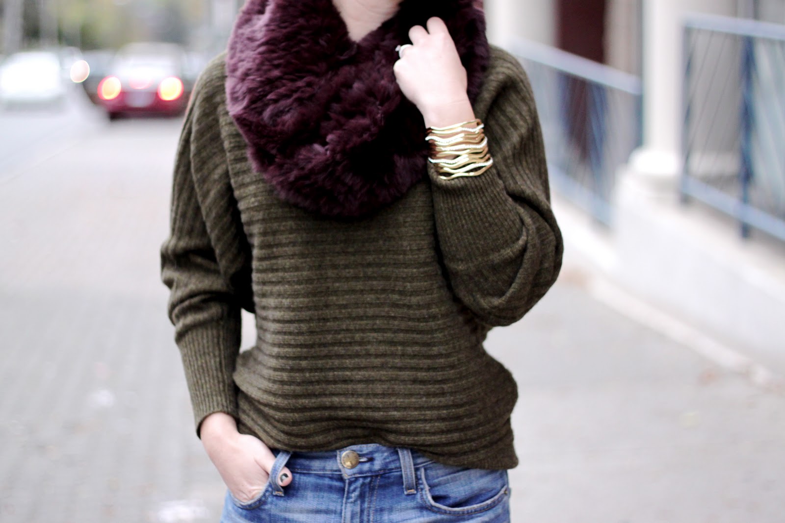 Cozy layers! By the way, Old Navy has affordable scarf and beanie options right now in fun vibrant colors. This neon green beanie is my current favorite (seen here).